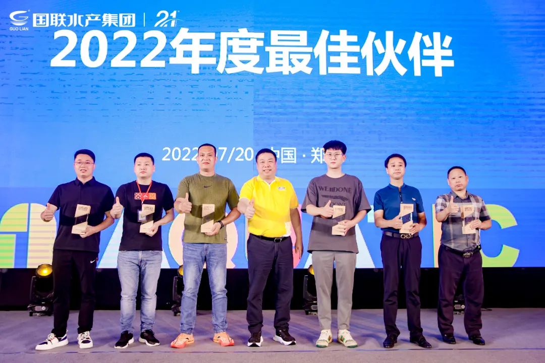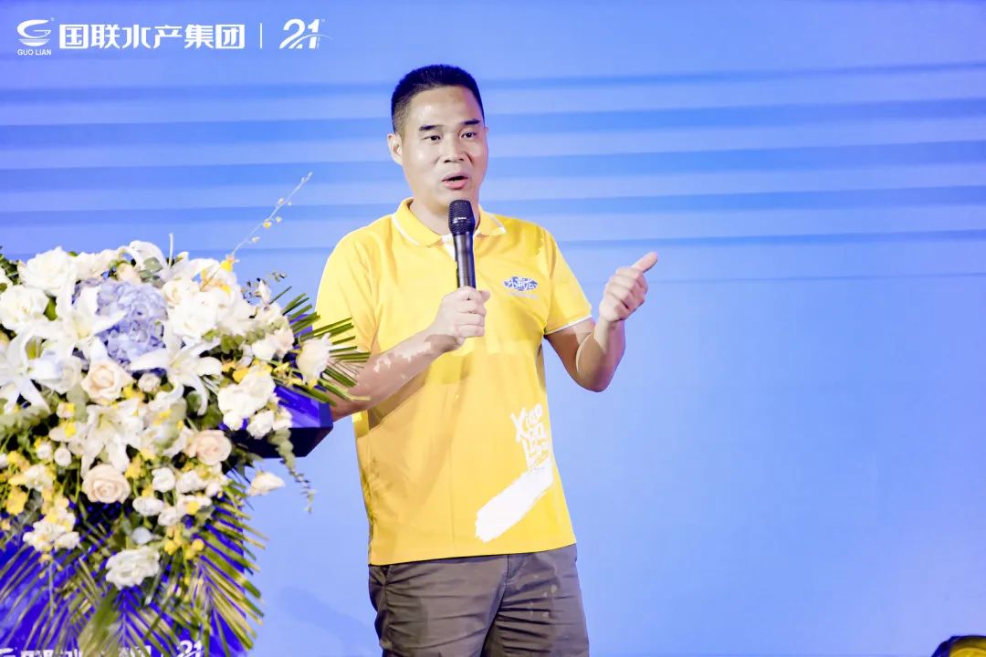 2022年是國(guó)聯(lián)水產(chǎn)集團(tuán)成立21周年,21年風(fēng)雨歷程,21年崢嶸歲月,從南海之濱到享譽(yù)全球,集團(tuán)今日的輝煌離不開(kāi)每一位客戶伙伴們的信任與支持!集團(tuán)特此授予優(yōu)秀合作商榮譽(yù)獎(jiǎng)杯,希望未來(lái)雙方強(qiáng)強(qiáng)聯(lián)手,再創(chuàng)銷售佳績(jī)。優(yōu)秀品牌服務(wù)商代表百珍匯社團(tuán)總經(jīng)理蔡明威分享了經(jīng)營(yíng)心得。其表示,小霸龍海鮮預(yù)制菜美味便捷,完美解決年輕一代的做飯難題,深受C端消費(fèi)者喜愛(ài),我們抓住風(fēng)口,乘勢(shì)出擊,相信未來(lái)銷量將持續(xù)增長(zhǎng)。