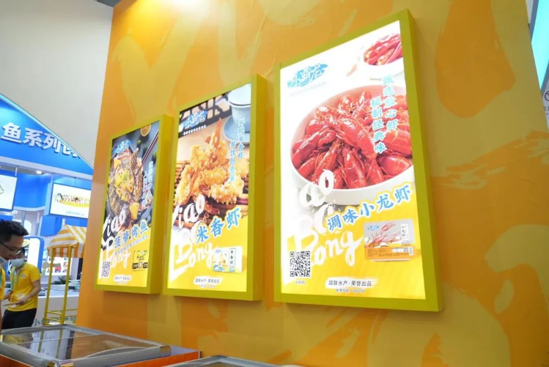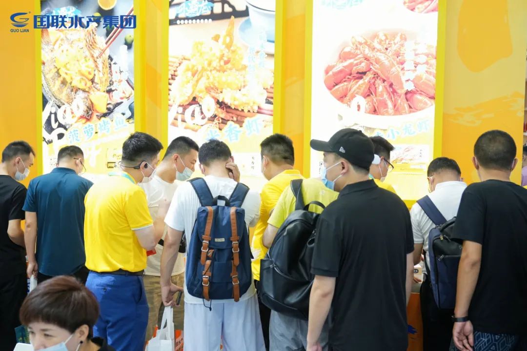 目之所及,皆是追夢人!國聯水產集團營銷精英們精神飽滿引領客戶們參觀、解答疑問、解說展品,小霸龍預制菜創新單品-風味烤魚、米香蝦、水晶蝦餃等火爆簽單。