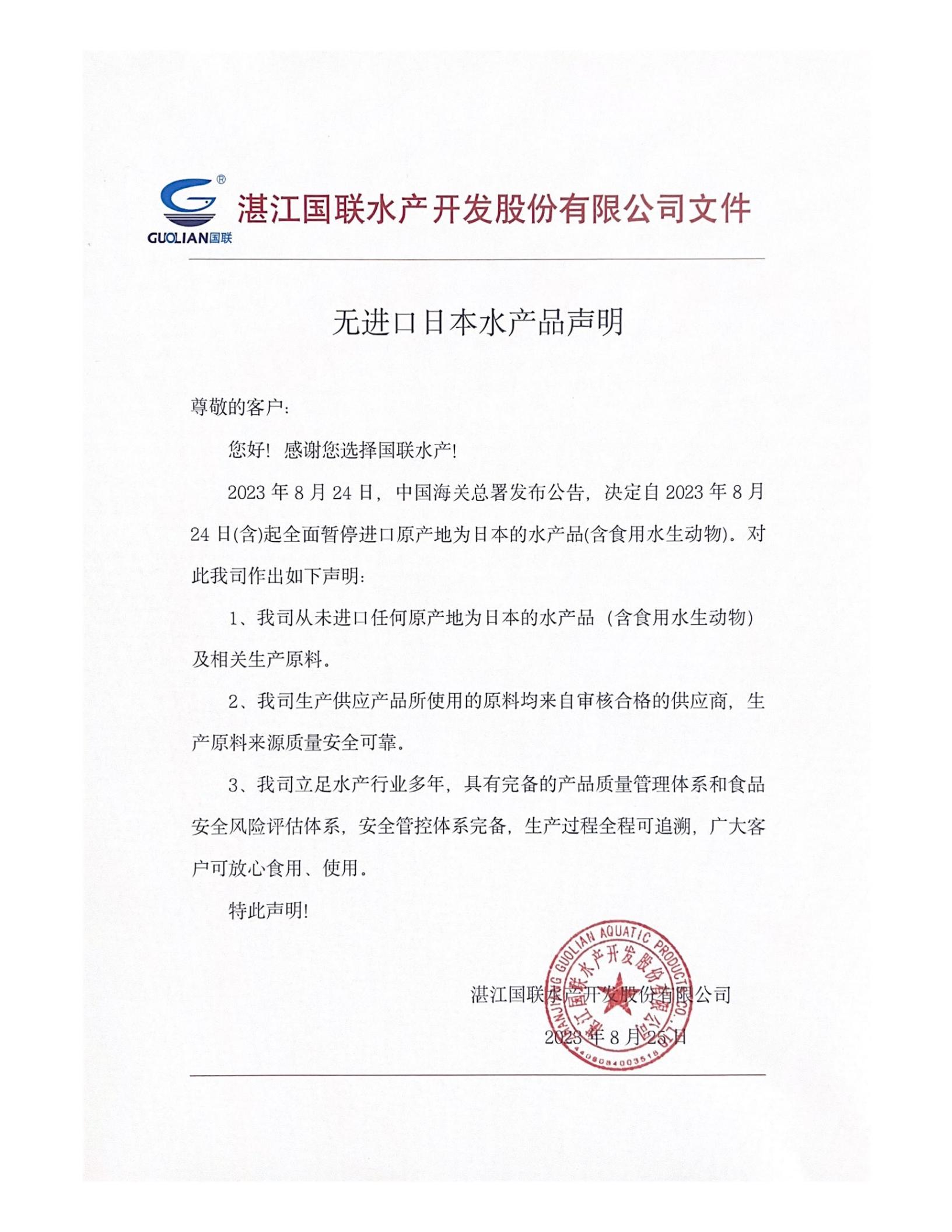 無(wú)進(jìn)口日本水產(chǎn)品聲明