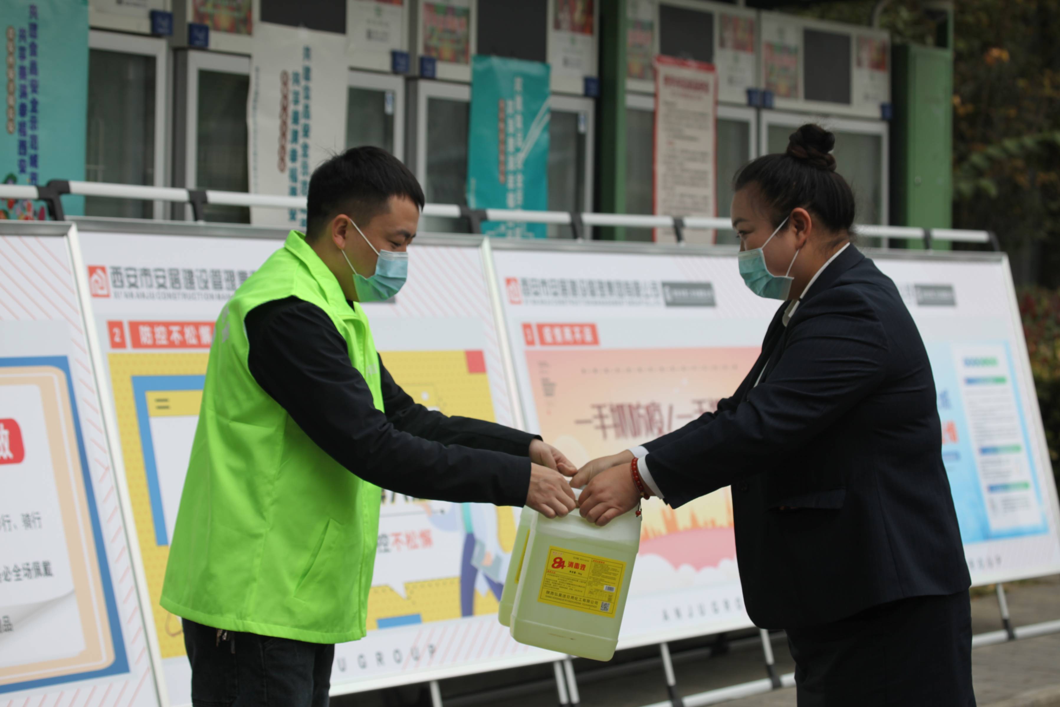 本次活动由公司副经理杜军同志和纪委书记尚进同志带队,志愿者一行16人,首先来到米家崖保障房项目工地,向项目工人宣传了在当前西安严峻的疫情防控形势下,做好常态化疫情防控的重要意义,并组织工人学习各项防疫知识,例如:如何正确佩戴口罩以及七步洗手法等各项科学防控保护措施,倡导大家提升疫情防护的警惕性,切实做好个人日常防护,防止疫情传播蔓延。同时,志愿者还为工人们送上口罩、酒精、消毒液等防疫物资,叮嘱大家做好自身防疫保护。