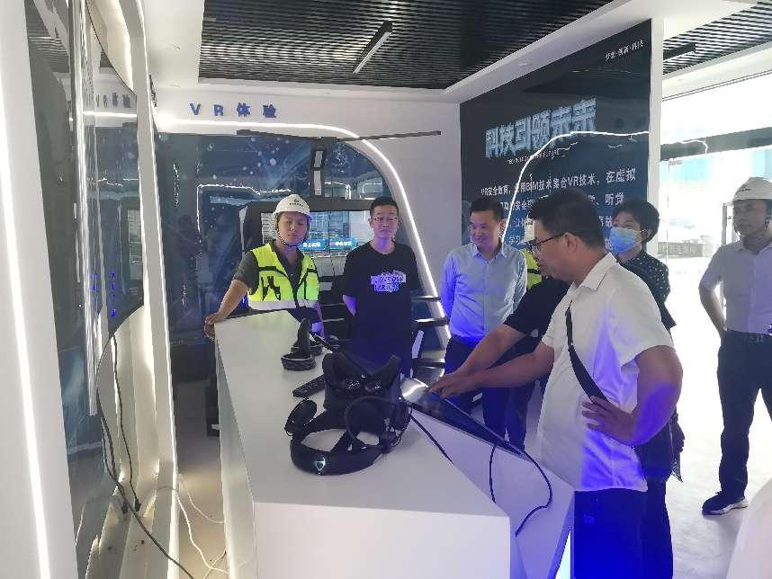 考察团一行在施工现场听取了项目负责人对平疫结合项目的建设概况、设计理念、高穿插作业方案以及项目实际进度的介绍后,一同参观了项目数字化管理展厅,实操VR体验、AR体验、风控电子沙盘等内容,对港务中路保障性租赁住房的创新模式表示肯定,对数字化管理展厅的节点性施工技术交底提出赞扬。