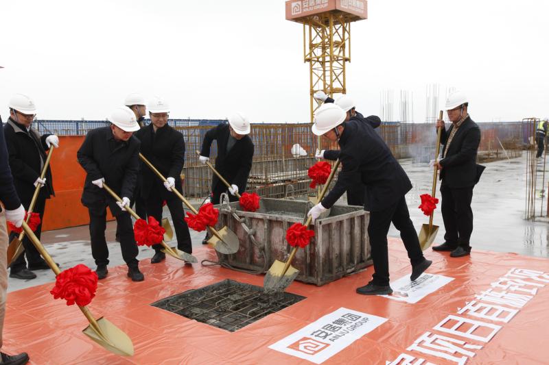 在封顶仪式进行过程中,施工单位项目经理余小健、监理单位副总经理王斌、建设单位副总经理皇甫鑫先后上台发言致辞,对项目前期建设工作历程进行了深度回顾和总结,并对项目的未来寄予信心和厚望。最后,安居集团项目建设管理部副部长王磊宣布首栋楼封顶大吉,随着最后一方水泥的落下,现场礼炮齐鸣,掌声四起,喜庆非凡,这也标志着项目进入全新阶段。