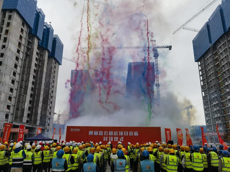 柳林路公租房项目EPC总承包一标段首栋封顶