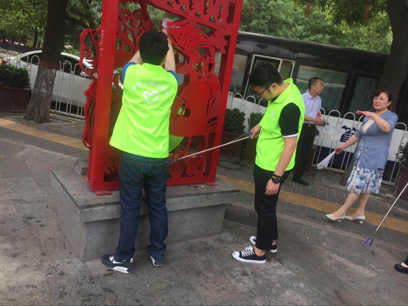 志愿者合理分工,积极配合在指定区域--永兴坊周围清扫路面垃圾,捡拾烟头杂物,擦洗人行道护栏,清理卫生死角。用实际行动倡导文明新风、塑造城市形象,为打造美丽新城贡献力量,同时也展示了文明单位的良好风貌。