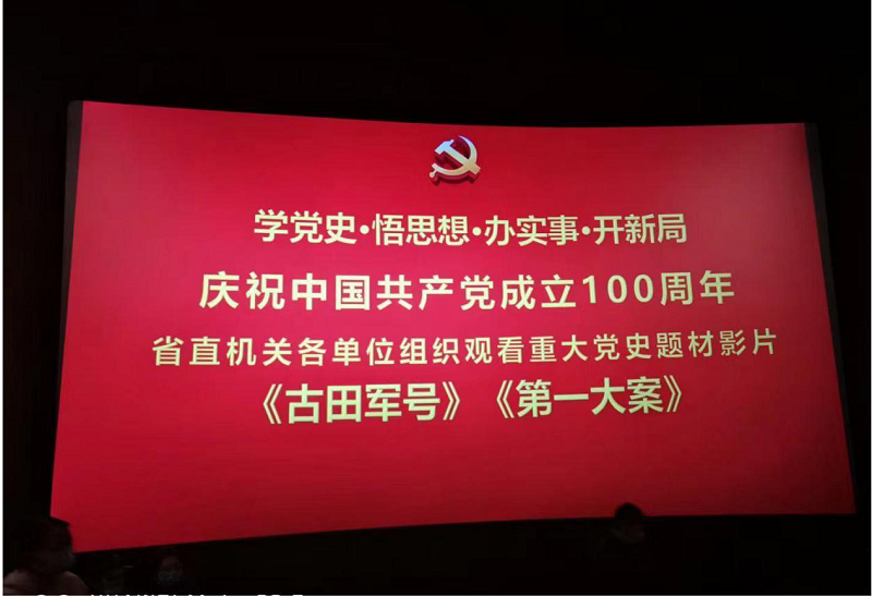 为庆祝中国共产党成立100周年,深入推进党史教育扎实开展,巩固“不忘初心、牢记使命”主题教育成果。近期西安市第二住宅建筑公司党委组织党员干部观看党史题材影片《古田军号》《第一大案》。