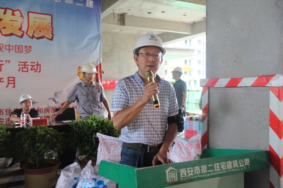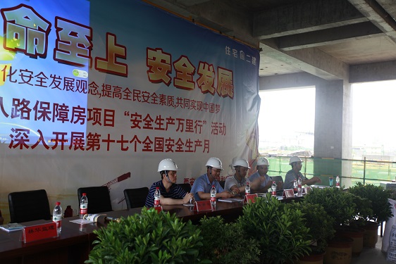 正值全国第十七个“安全生产月”,此次安全专项活动本着“生命至上、安全发展”的理念,为推动安全生产重点工作落实,推动安全理念深入人心,6月26日上午,西安市住房保障和房屋管理局在丈八路保障房建设项目一线施工现场开展了2018年“安全生产万里行”专项安全教育活动,聚焦责任落实、科技强安、依法治安等方面的重点内容。 西安市第二住宅建筑公司积极承办了此项活动,参加本次活动局属房管处、保障处和保障中心的有关负责同志,还有开发总公司、经营一公司、经营二公司、经营三公司、工商业经营公司、住宅一公司、林华监理等单位负责安全管理的人员以及项目部各施工班组共计410余人。同时邀请中国安全健康教育中心安全应急科专职教官作了现场指导。