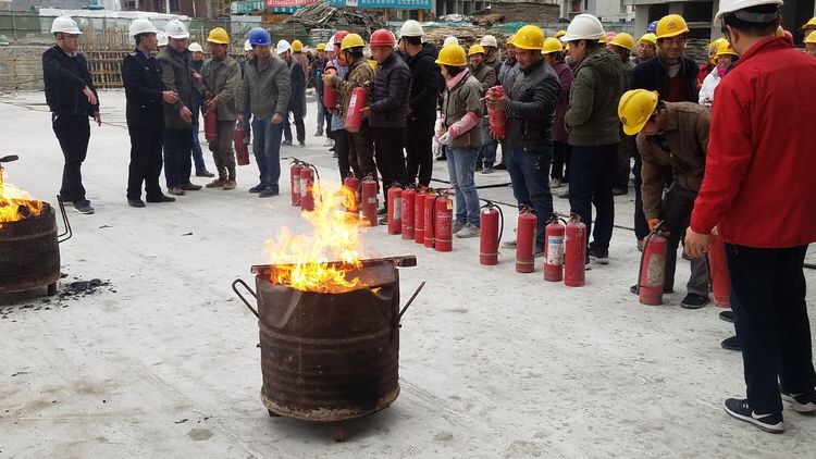 为了使大家更好的掌握培训内容,在施工现场举行了消防灭火的实战演习。在演习现场,经过教官仔细认真的讲解和实操后,全体人员进行灭火,分批次开展,全员参与,相互积极配合,听从教官指挥,紧张有序的完成了灭火演习。